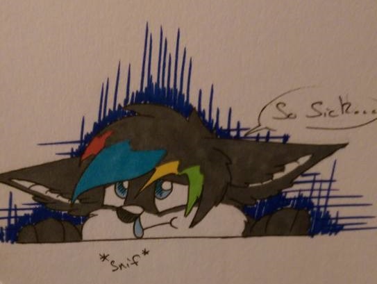 I feel like crap... there's a bug going around and it's so annoying! breathing problems, dizziness and a pounding headache means i can't travel safely, i can't do anything properly and even when drawing i can't freaking concentrate!