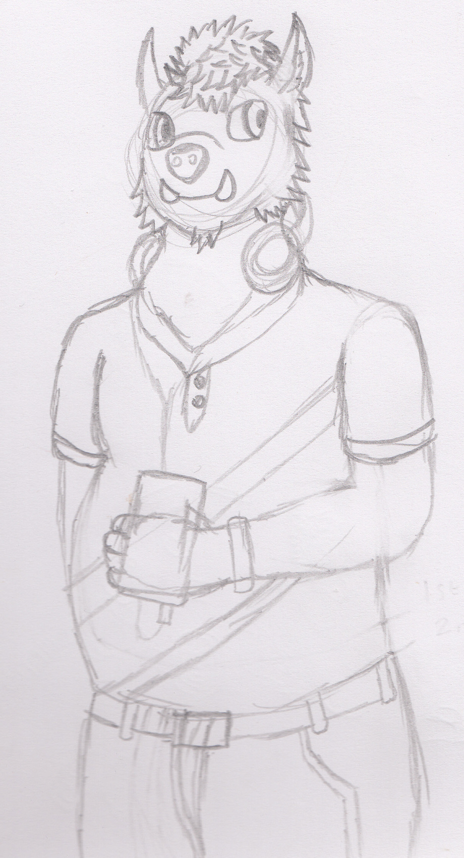 He's a 5"5 boar with a chubby body, he has red hair and a brown coating of fur.