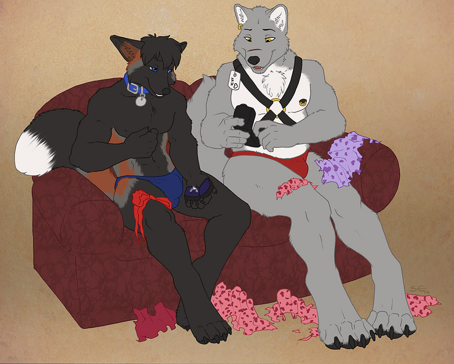 Both males swallowed hard as they reached behind their respective ends of the couch, and at the same time presented a small ring box wrapped in red ribbon to the other with a hasty and embarrassed, "Happy Valentine's Day!"
