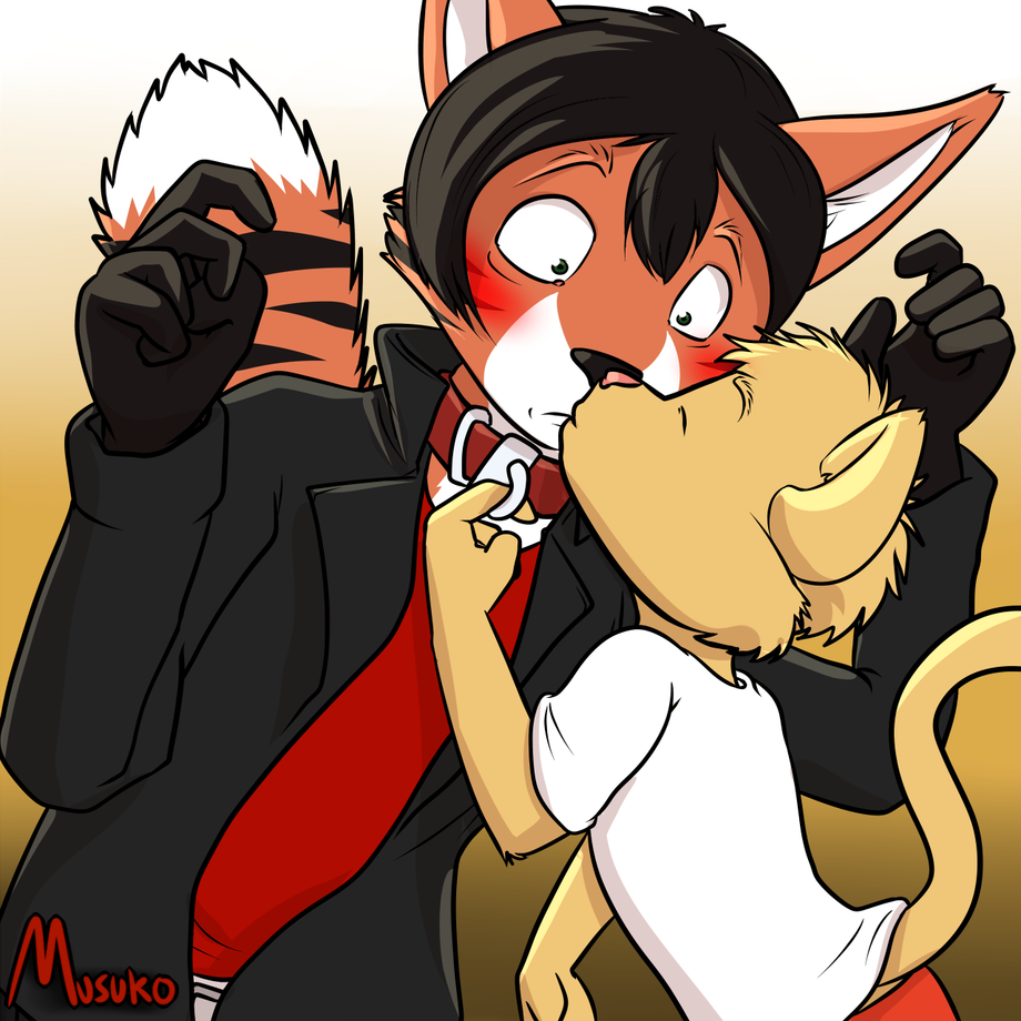 Little Musuko giving Val a kiss. He's also decided Val's his boyfriend, regardless of what Val thinks about it!