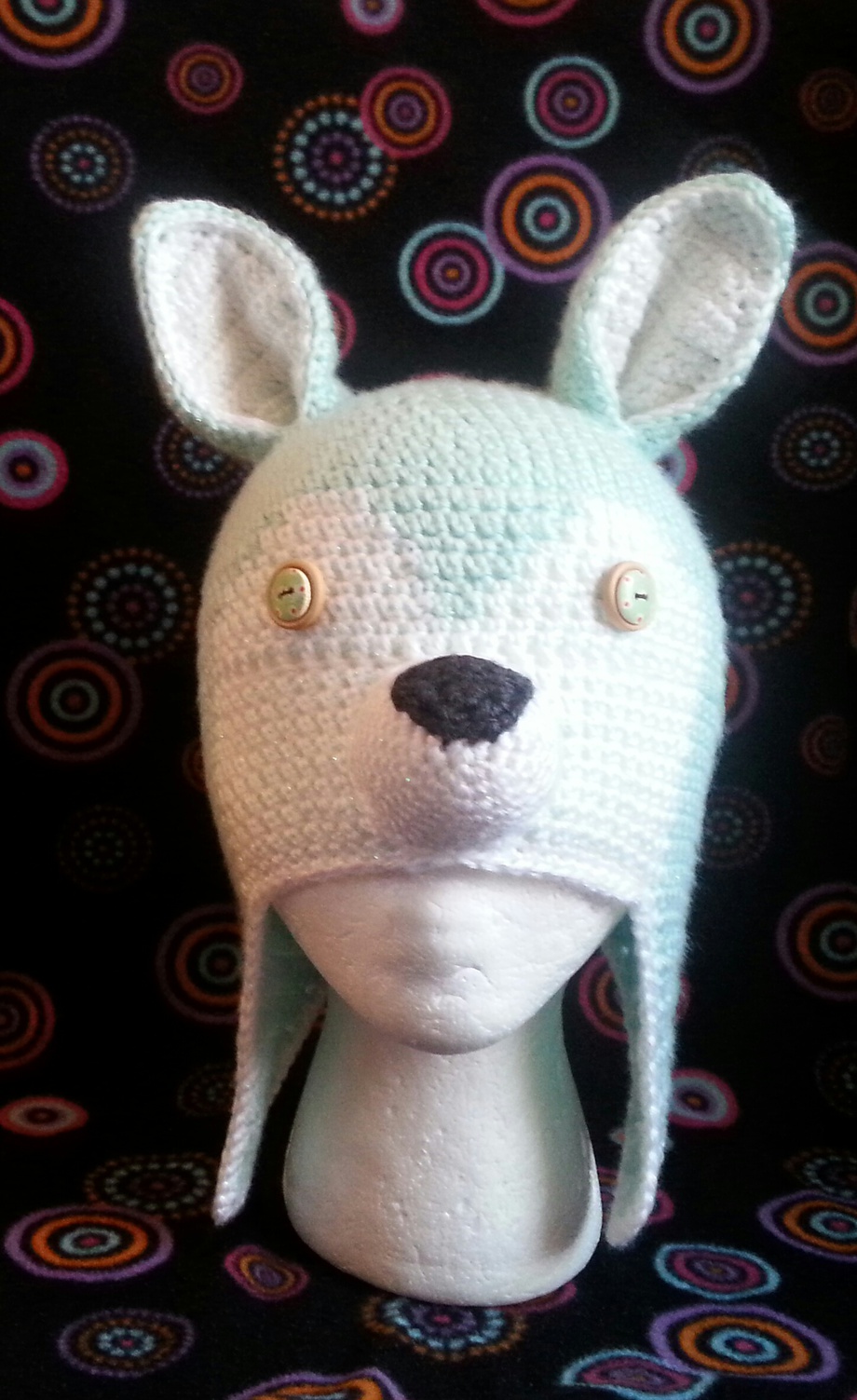 I was inspired to make this hat by the blue yarn.This is the last hat I'm going to make for a while.Right now I'm working on making crochet Stuffed animals.I'm in the process of working on an hippo and also on a wolf purse.