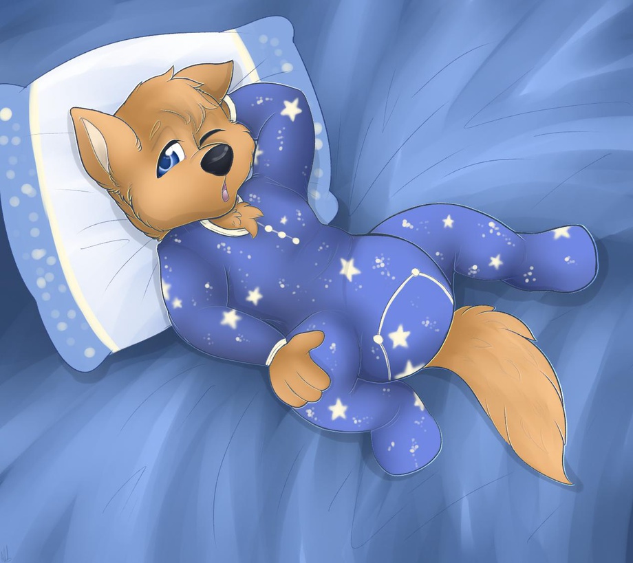 Little old Kiba woke up from his having a upset tummy,it must bin something he ate.As he toss and turn he start to whimper getting comfy.then he said "I had it" and start push out the mess into his diaper making sound as fill his diaper up.Feeling alot better he start to fall asleep but not before his Mommy check on him.She said I think you need a change before head back to be bed hon.The wolf pup gave a tired poutie look.