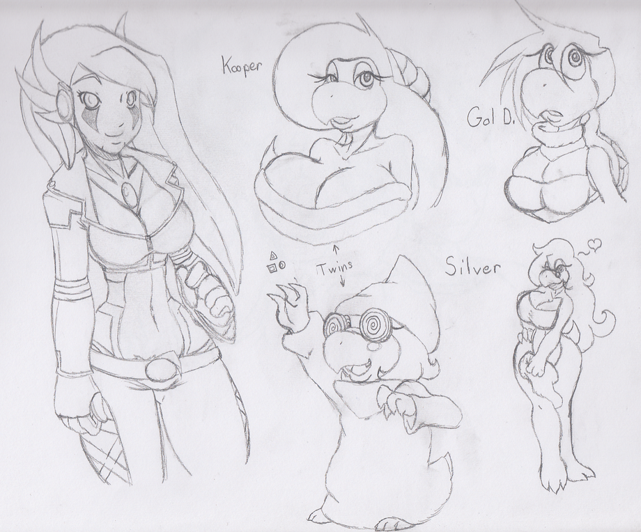Gol'D is the "normal" Koopa gal, even if there's nothing normal about her. Like the twins is taller than other Koopa Troopas but she's not like the Big Troopas. But unlike the two sisters, Goldy isn't an anomaly, she's half of the lower Koopa and higher Koopa (Low=Regular Koopas/High=Bowser, Bowser Jr. and the Koopalings species of Koopa). As most of the time she looks like a regular Koopa, she preferred to simply enlist as a Koopa Troopa.