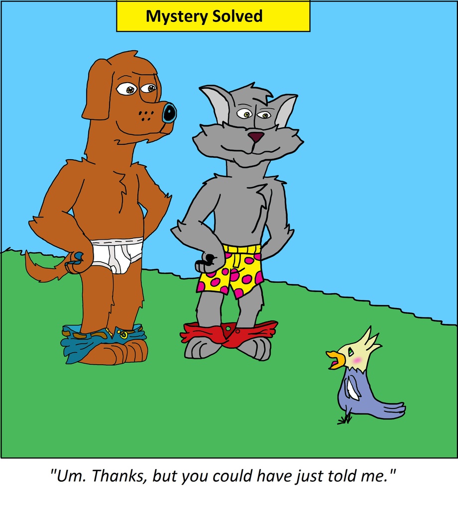 Wouldn't you be if a dog and cat suddenly pulled their pants down in public to show you their underw