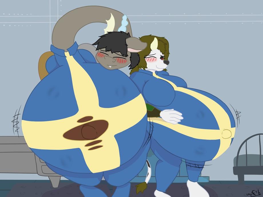 Commission for @anastasiahollow, wanting Shawn and his OC character Denise, heavily pregnant while having a bit of fun in vault suits. ^^