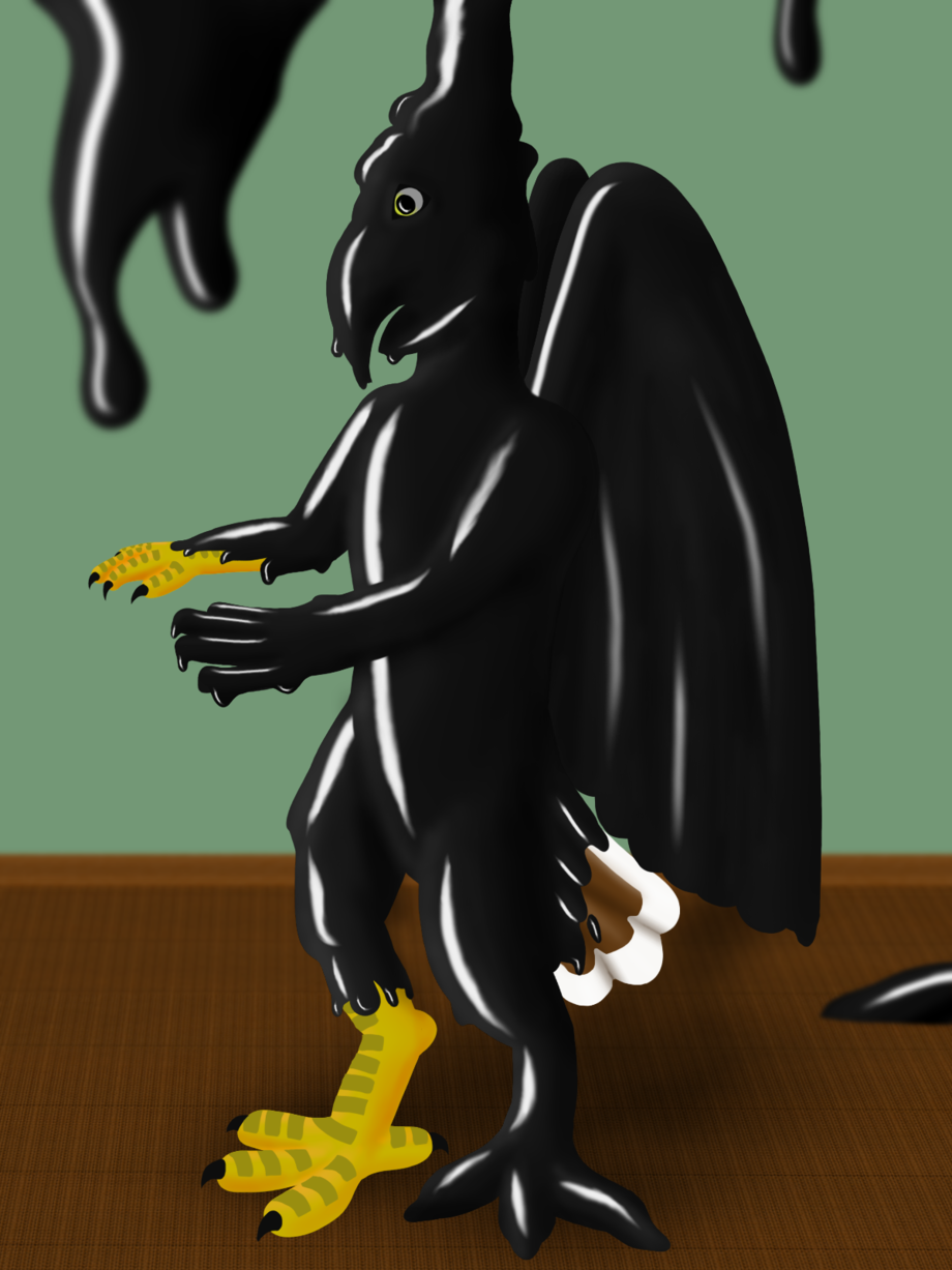 apparently has me covered in some sort of black goo...this can't be good for my feathers XP