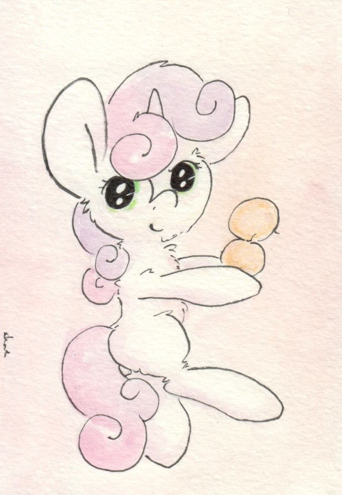 only thing you can top pancakes with is something sweet and maybe fruity. so lets start with topping them with seetie belle and maybe some apple......bloom ^^