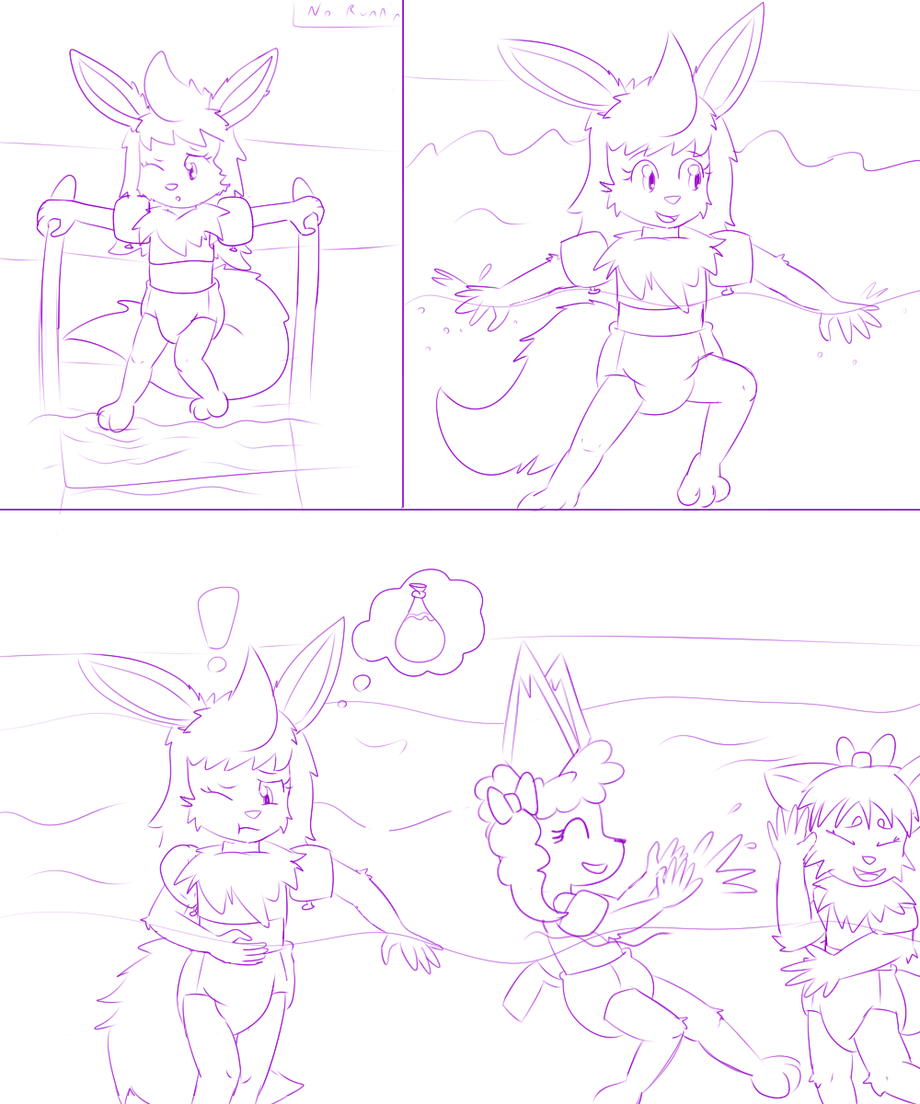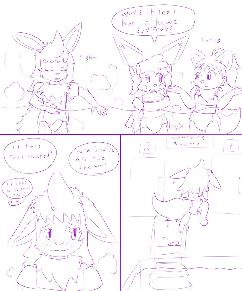 I look forward to making the swim diapers look cute in the colored version, I know they look sort of plain here. Since I was told to use anyone for the background, I used my Pichu (Bluebell) and Zorua (Tokala). More undefined characters will be added to the finished background to sort of fill out the scene.