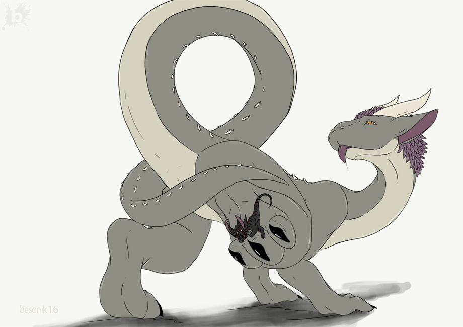 fursona as a feral dragon showing off some tail and his Nether Dragon.
