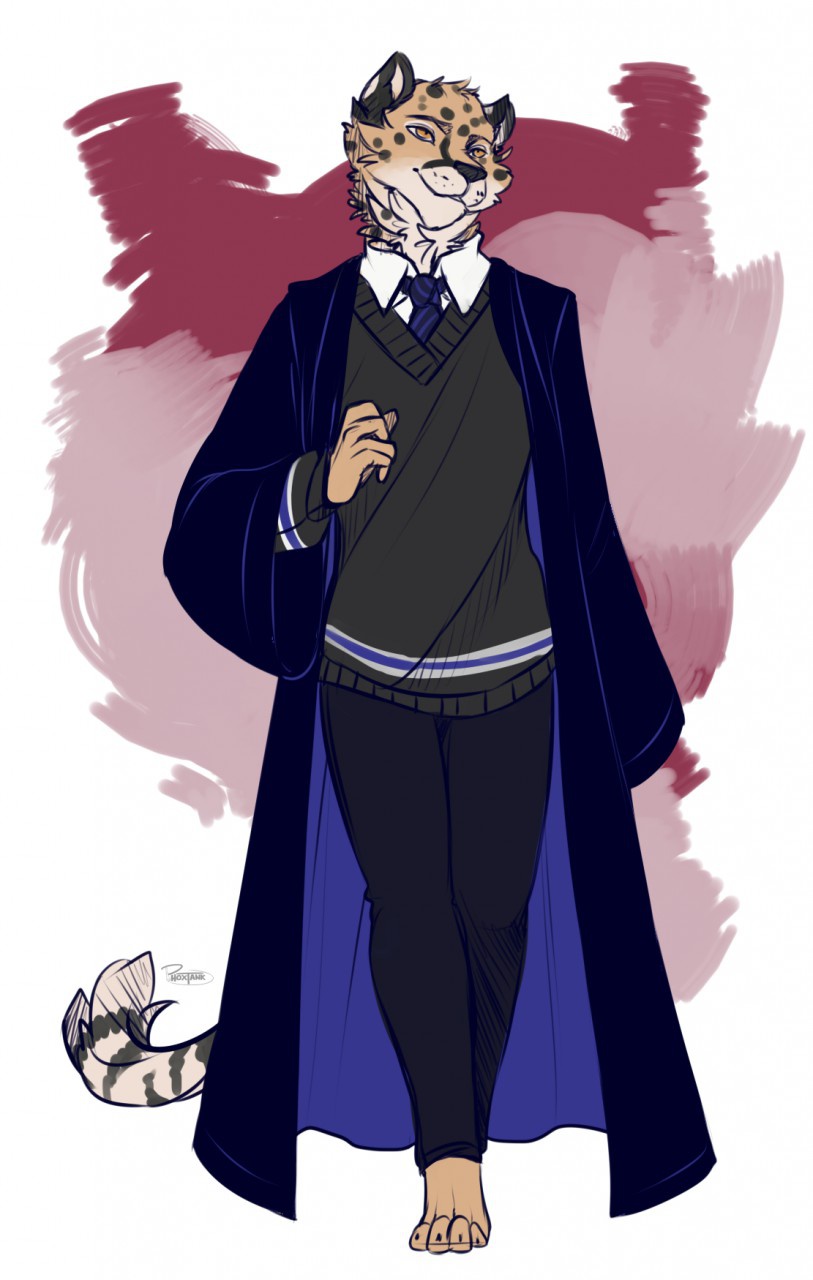 So one of my favorite artists, tanks, was doing more IA commissions and well... I got on that train once again. The theme for this particular one was school uniforms. And being the awesome person she is, when I pitched the idea that Spots was attending classes at Hogwarts, she was totally up for it.