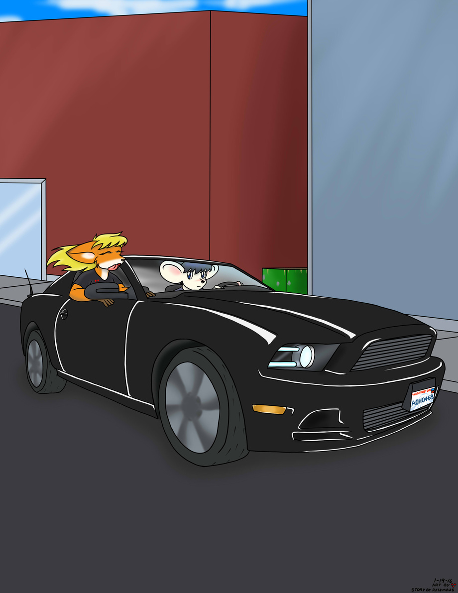 Maria glanced over at the adult mouse sitting next to her on the couch, the two of them just relaxing and watching television, but the young vixen was bored. „You knoooooow~?" she purred out, dragging her words out childishly, making the adult mouse perk up from looking at the screen. „You said you'd drive me around as long as it's not too far away, yeah? Can we drive to the park?" she climbed up on the couch, crawling over to him, her paws on his lap as she gave him the big puppy eyes, her tail swishing behind her in joy. „Pretty pleeeeeeeeease?" came the gentle beg of her. „I really love your car." she said, looking at it with huge eyes, the black paint job glittering in the warm afternoon sun. She wanted to say so the first time, but she had been too shy and too preoccupied with the idea of getting dresses. He couldn't help but grin at her compliment, glancing over the car himself. It was his greatest treasure so far and he was really proud of it. "Well, get your sweet butt inside then." he told her, opening the car for her. He watched her climb in, smiling at how happy and pretty she looked now, fresh clothes and shoes on her feet, it had been only a few days, but it seemed like there was a year of difference between the dirty and scared runaway and the well groomed kit sitting in his car, seat-belt already fastened around her. "Come oooon, let's drive!" she called out at him, breaking the mouse out of his thoughts and he entered the warmed up car with a grin. It has been a really warm day for late autumn, warm enough that he had to argue with Maria to get shoes on her feet, the young girl seemed to love to wear just the bear minimum of clothing... not that he minded that much inside his home. He started the car, turned up the radio and backed out of the drive way, starting their way to the park. She glanced over at the mouse, rubbing her nose and trying to prevent her tail to bap against the seat too noisily with how amped she already was. Toshubi seemed really concentrated, both hands on the wheel and for such a strong car he drove it really nicely, the girl trying to hold the urge to ask him to drive faster and show her what this nice car could do. Looking out of the windows, she saw they were driving the long main road already. It was Sunday, so there weren't that many cars on the road with them. Wriggling around in her seat, the vixen felt way too warm, her fluffy fur already settled for winter and so she wasn't really used to warm days anymore. With a short glance over at her, he noticed her wriggling and the soft pants that came from her. "If it's too hot, you can open the window if you want." he told her, reaching over to give her a short scratch behind her ear, though quickly returning his hand to the steering wheel. This seemed to be music in her ears and sure enough, the window was quickly opened wind rushing over her and she leaned back with a happy sigh. Feeling sufficiently cooled down now, she listened to the music, the roar of motors and the air blown around the car. The feeling of rushing wind against her made her close her eyes and lean a bit closer to the window. She glanced over at him, wriggling a bit more in her seat, a big grin spreading over her face. "Feels nice, doesn't it?" he asked her with a smirk as he saw how much she seemed to enjoy this, to which she only responded with a soft, approving hum and a little giggle. The vixen watched other cars and trees and houses as they passed them. Soon enough that urge to make him drive faster turned into a different one, the girl already as close to the open window as possible. He heard a click and perked up, quickly looking over at her to see that she had freed herself from the seat-belt. "Hey..." he made at her, but he could as well talk with a wall, the girl first just putting out her head into the rushing wind, her long hair blown back and her huge ears tugged back by the speed of the wind, making her close her eyes to protect him. But that wasn't enough yet for Maria. She half stood up in her seat, one hand going for the dashboard as the other held onto the car door, she pushed more of her out into the rushing wind. "Woooooooooooooohhh~!" she howled out in the wind, letting her tongue loll out, satisfying her childish canine urges. The adult could only smirk, shaking his head lightly in disapproval, but he didn't really have it in the heart to stop her from having her silly fun, letting her hang her head out of the car window like a dog.