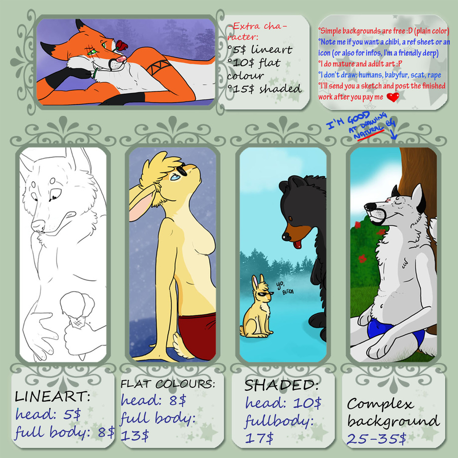 This is my new commission chart :D if you have any question you can note me and I'll answer as soon as possible!