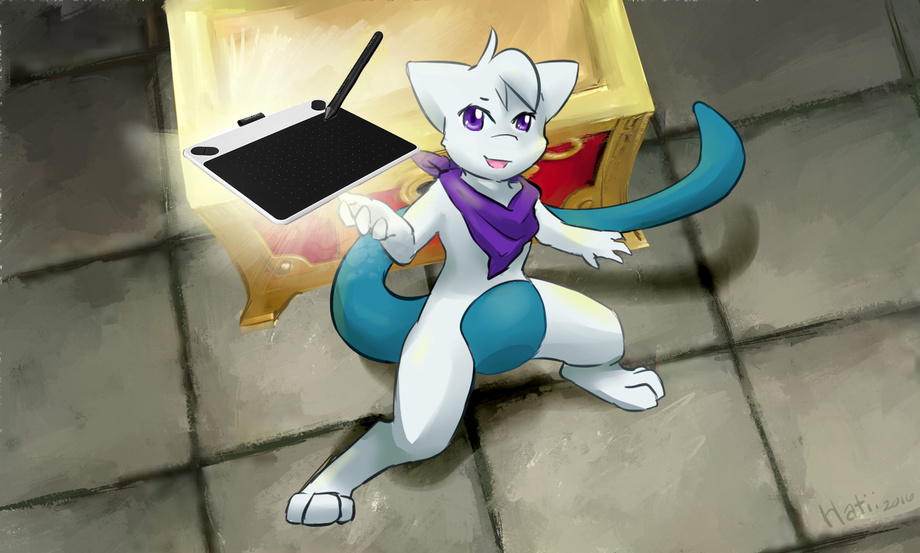 Guess who just got a new, FUNCTIONAL tablet? Aww yeah, it's me. It's a tad different from the one I'm used to (sadly no eraser on the back end of it... HERESY) but at least this one works? It's a small, Wacom Draw, btw. Got the cheapest one they had, I didn't need all that prepackaged software anyway.