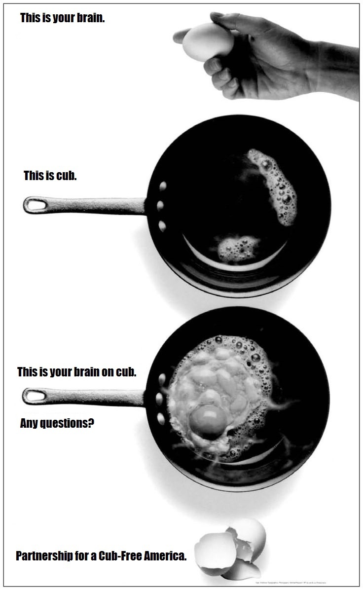 So what you are saying is "my brain on cub it is a healthy and nutritious breakfast"? Shit I don't my brain to be eaten. 0.0