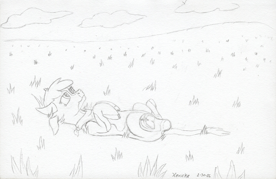 Arizona laid in the lush, cool, green grass of the prairie, taring up in the sky. The only sound that could be heard was the gentle breeze blowing over the grass, and the sun bathed Arizona's entire body with it's comforting warmth. Great cottony clouds lazily drifted across the sky, slowly morphing and changing, and the little cow made a game of finding patterns and images among them, and then watching as they slowly morphed into something else.