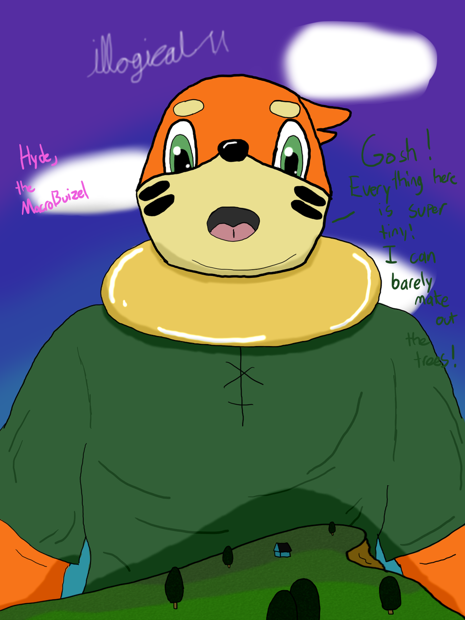 Hyde is towering over a cliffside, barely able to see the trees due to their miniscule size!