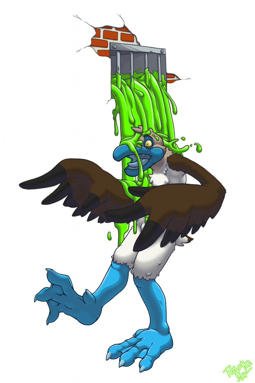 A comms for Otto_042 of his blue boobie getting caught of guard by some wayward goo. 2 more coming soon :3