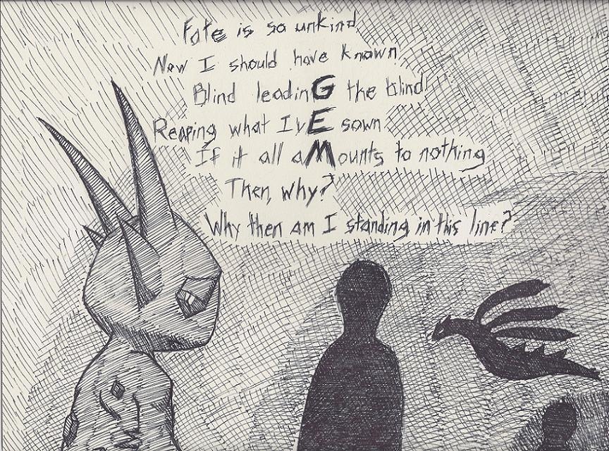 Fate is so unkind Now I should have known Blind leading the blind Reaping what I’ve sown If it all amounts to nothing Then, why? Why then am I standing in this line?
