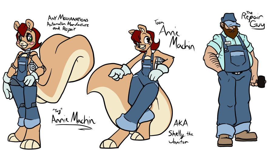 Annie Machin in her animatronics form, in the form she sees herself as, and the human that happens to be haunting her after he was killed in mid Fazbear repair. She is a fun character, and I am intending to do more with her. Because she is a lot of fun.