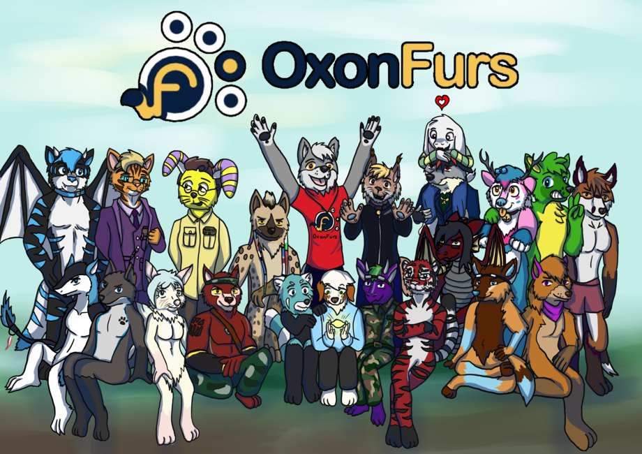 Group picture I did of the various fursonas of the Oxonfurs, a furmeet I usually frequent. Featuring my own three sonas, Zeydaan, Asriel and Shoto.