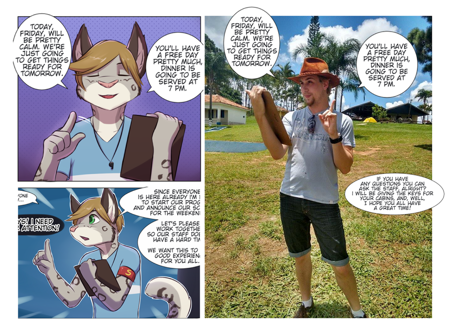 I like how the way you cut the bottom panel on the left has him shouting "I need attention!"