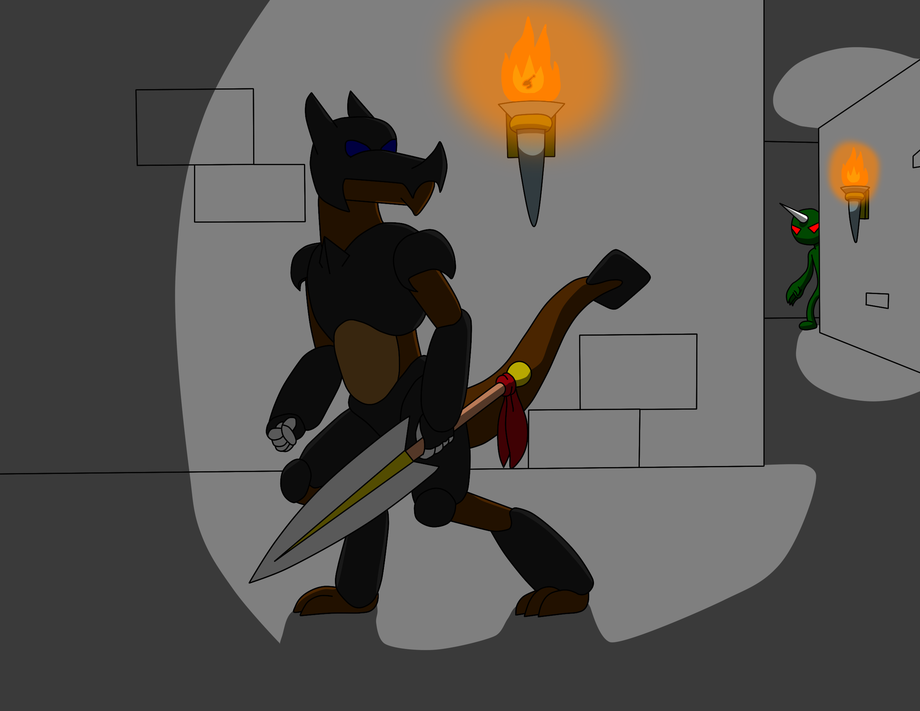 Not far from a village was an ancient dungeon that held riches. The treasure was said to be worth more than a kings horde, However there was a problem. The dungeon in question was said to be the home of strong and dangerous monsters and that only the strong would be able to enter. A Dragon the size of a 6 foot man decided that he was going to brave the Dungeon, he had been traveling around and fighting various foes. Unlike other Dragons, this one was grounded, he had no wings. before he entered the dungeon, a villager asked him his name, in response he simply said his name was Dreggo and then entered.
