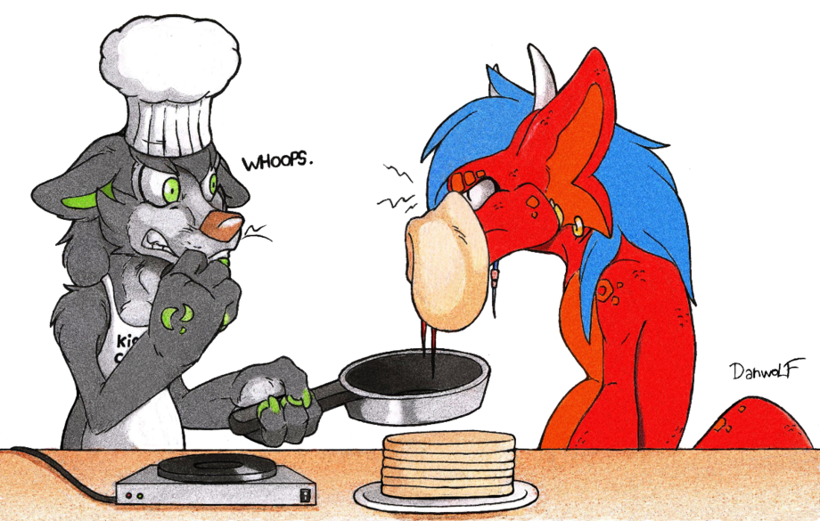 I've made pancakes ^w^ Epigon doesn't seems very happy tough,I've shouldn't swing that thing around when someone is close .w."