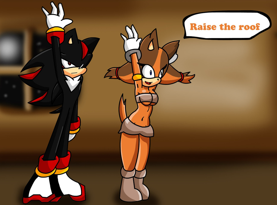 Shadow and Sticks are in a party... XDD shadow didn´t want to go , but sticks make him go... althought he don´t undertand how a party works , so he basically is imitating her .