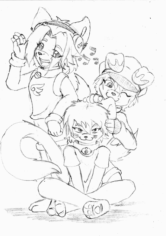 My characters: Fluco (dog-left), Ibu (cat-middle) and Shofu (dog-right)