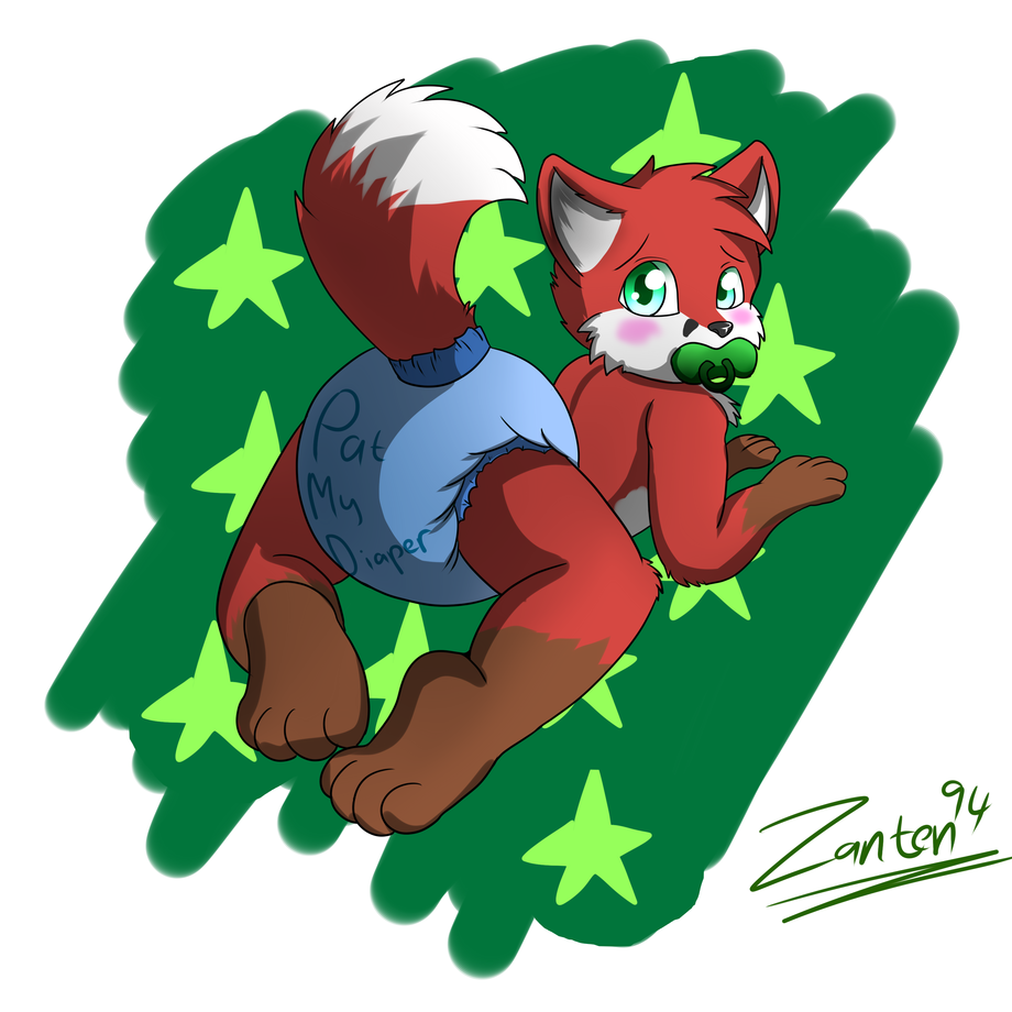 Foxy was crawling around at a big party wearing only his thick diaper. During Foxys last diaper change his mother have put him in a very special diaper that have a text written on the angle off his butt whit the word "Pat My Diaper". When they get back to the party room and Foxys mother let him down back on his blanked that was on the floor he heard a big awwww behind him. He turn his head around and notes that everyone was looking at him whit a happy face.
