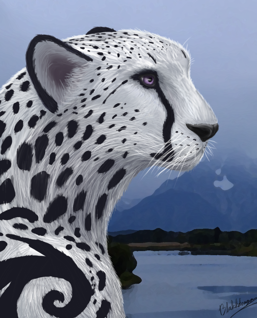 Doesn't he look wonderful? I always wanted a portrait of Aryn, one that goes in-depth with his facial features, because he sure is a pretty cat. Yes, he's not very different compared to an african cheetah, but his violet eyes are mesmerizing, and my friend did a truly fantastic job on them. I mean, I love every spot, every strand of fur in this drawing, but the eyes are something special indeed.