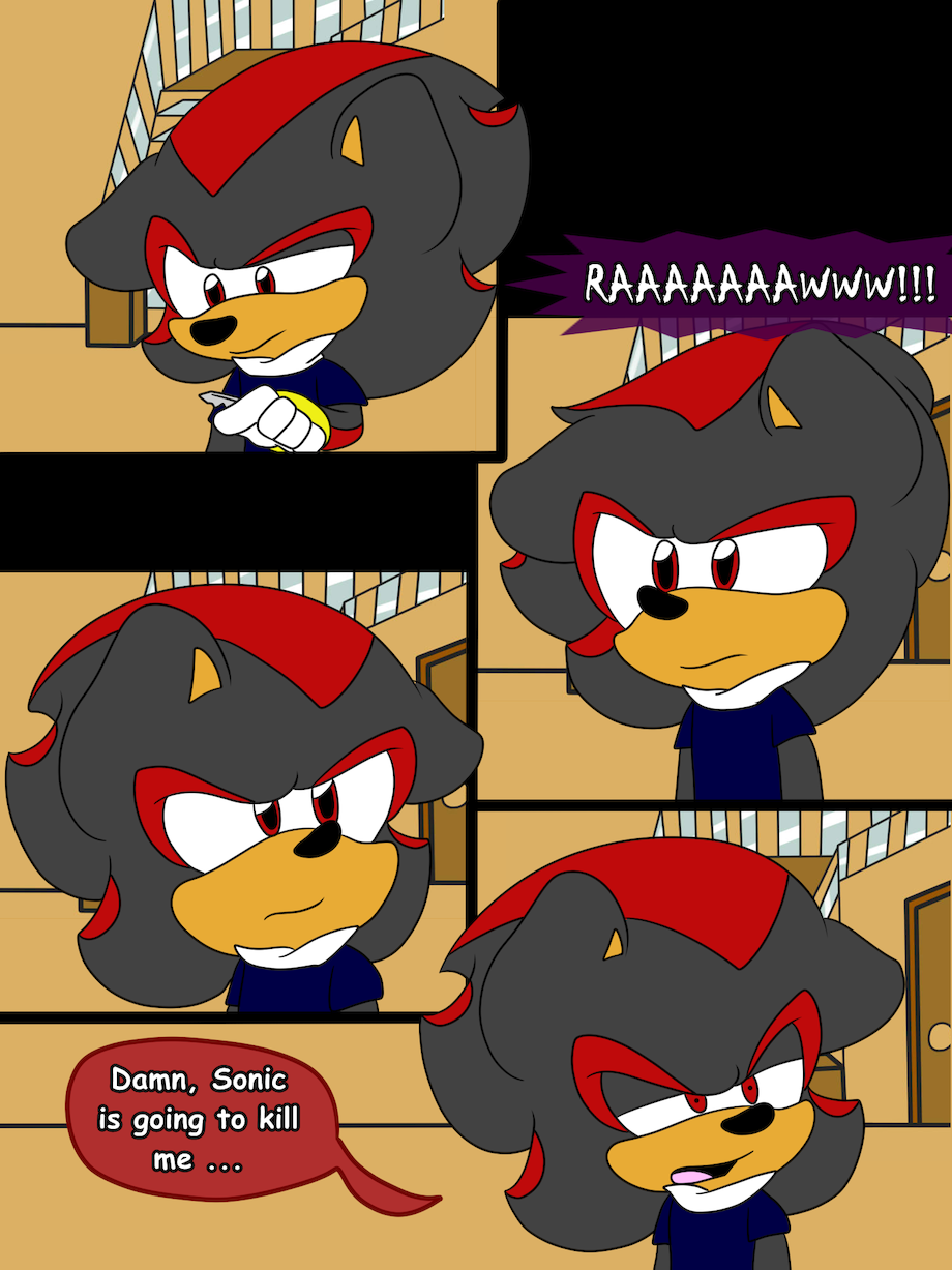 *Sonic gets angry when Shadow doesn't open the store, he does this 2 or 3 times around the month* Yeeey!!! I could do 2 pages more!!! X3 OH! I did a draw but it is a big, really big spoiler... wanna see it or I wait after the comic updates?