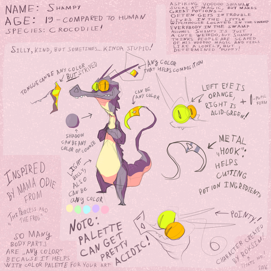 He has a master which will be drawn at some point, he was taken from his family by master when he was a lil baby crocodile! No violence of course, only good will!