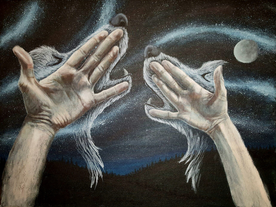 Going to say sorry in advance for the poor photo quality and glare. This is a medium sized acrylic painting I finished about 2 months ago. Took me awhile to finish. I used my own hands as models.