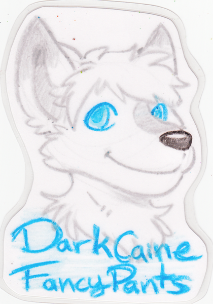 A badge with my full name on it, Dark Caine Fancypants, all nice and official now.... in crayon ^v^