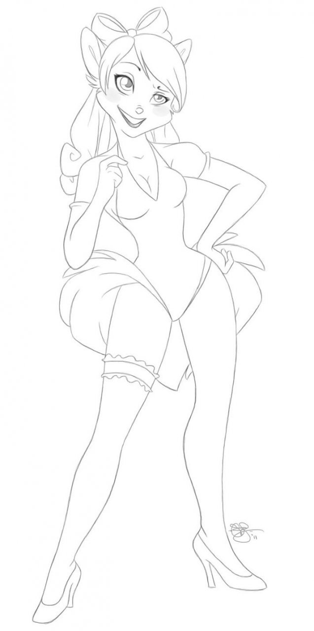 So forever ago I felt really inspired to draw and my bf suggested I do a pinup type sketch of my fursona KK. He said he thought it would be interesting to see her in the "Miss Kitty" outfit (from The Great Mouse Detective), so I doodled up a rough piece.