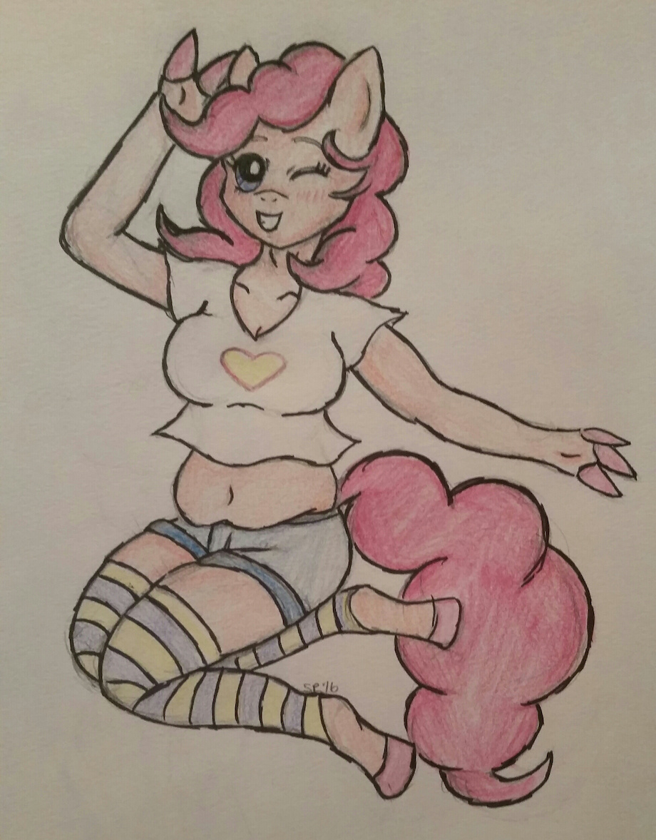 I haven't drawn ponies in a while, so I had to draw my favorite, Pinkie. I'm playing around with how I draw hooves, so they may look a bit rough.