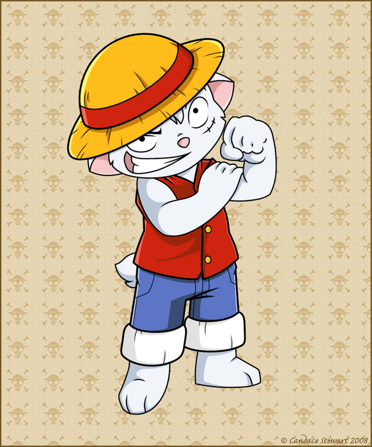 I love one piece! UwU I want to draw my cat in Luffy's new outfit, sometime!!