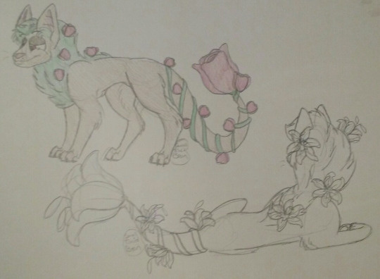 So some flower.. jackals? Canines? I’ll work on a better name :p Anyways, they’re sweet and docile creatures, that allow insects and birds to gather/feed from their flowers.. They’re pretty rare, as they tend to shy away from humans, but some say that seeing one will bring the blessing of whatever flower grows on them (so love, happiness etc)