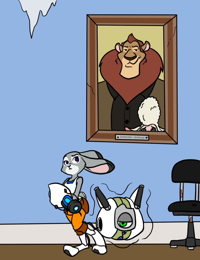 A fun fanpic of Zootopia and Portal, since both movies have been bestowed with the awesomeness of the voiceactor J.K. Simmons. Cave Johnson/Mayor Lionheart just hit my mind and combined the two worlds, and with the Perpetual Testing Initiative, who’s to say this world doesn’t exist somewhere.