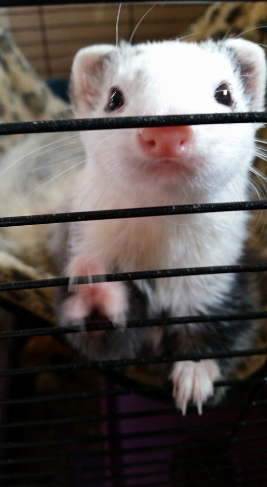 This is one of my ferrets, Ginger. I took this of her yesterday and I think she looks pretty darn cute. She pretty much has the sweetest face ever. It can be hard to get good photos of my ferrets since they get super excited whenever someone comes up to their cage. I hope this is furry related enough to post here.