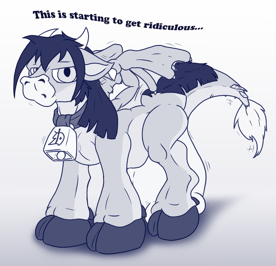 I seem to have alternated lately, pony-Danny, cow-Danny... well, here's both at once, and seems like he's slowly starting to catch on to the silliness.