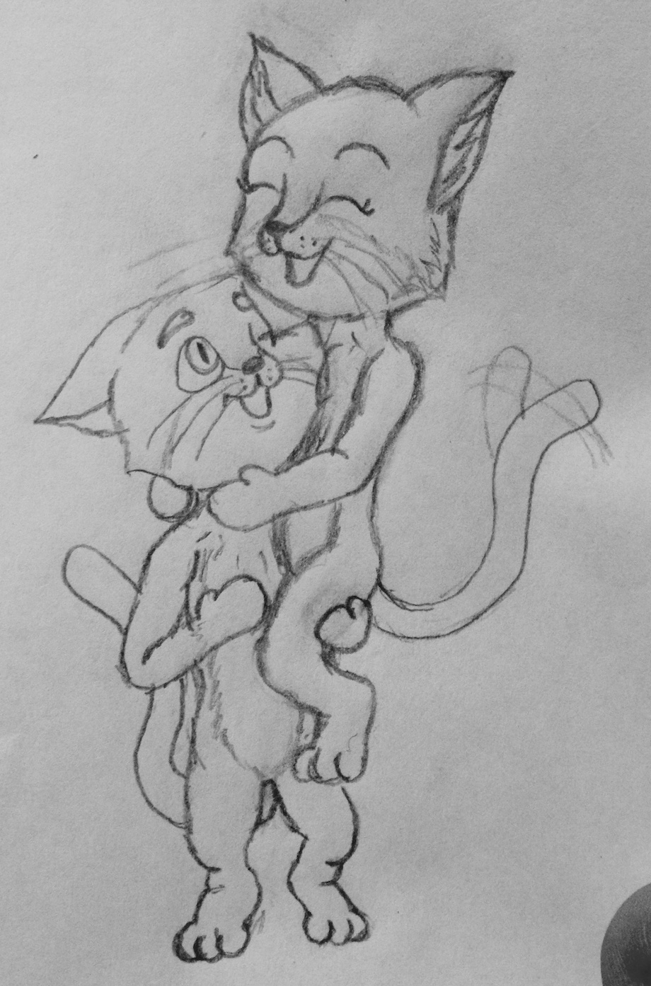 I tried to draw a request from a friend, he ask me for a drawing of two of their friends as cats, one male and one female.