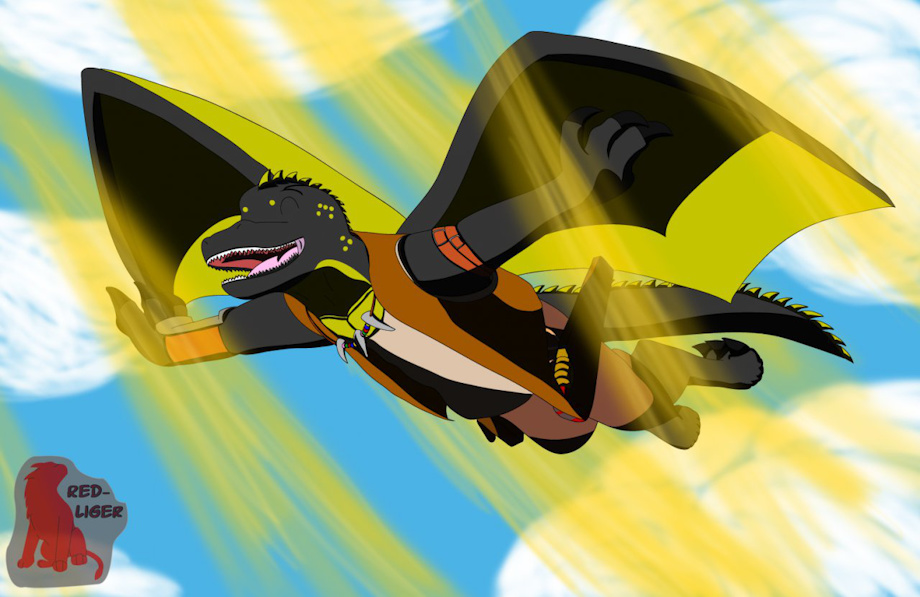 My entry to the-lost-legends monthly art challenge. The theme of this month is how our characters would react to a Heat Wave. I figured, Ryu, being a cold blooded reptilian, would enjoy the blistering heat and take a quick flight through the sky's. Only to later get lost himself.
