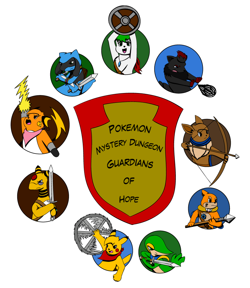 This is some fanart and contest entry for a DA user's PMD comic Guardians of Hope. Which is a really good read. Anyway, I tried to draw out most of his characters. At first I was gonna do something like a group image. But I went with what you see here. Probably try that next time! I'll admit that the shield and text maybe a bit lazy on my part.