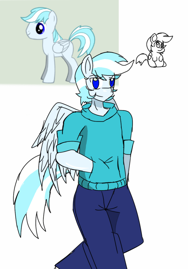 Been meaning to post this, but this is another pic I requested to Rainic a long time ago. This here is my MLP OC, SIlver Hawk. In stories I have him in, he's more or less paired up with Fluttershy, he's a doctor(here he's wearing his normal attire), has a little sister named Timid Swallow, and is from Neighpon(the MLP equivalent of Japan). He's around 18-20 years of age(depending on the story), and has a...well, silver hawk as a Cutie Mark.