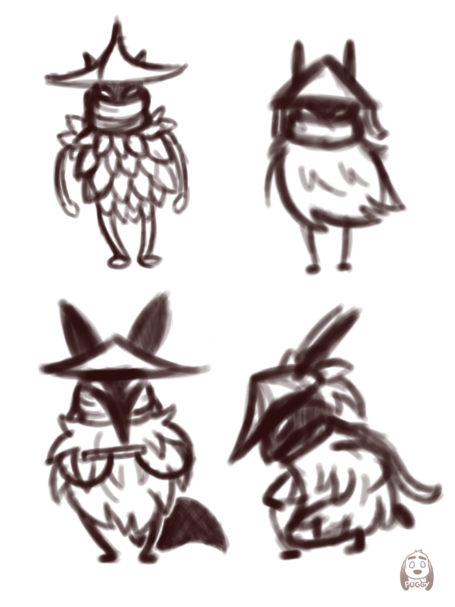 I used all the ideas I sketched for these, all came from very minimalistic thumbnails, and ended up with 4 very distinct characters, and I really liked the results, I should make more of these.