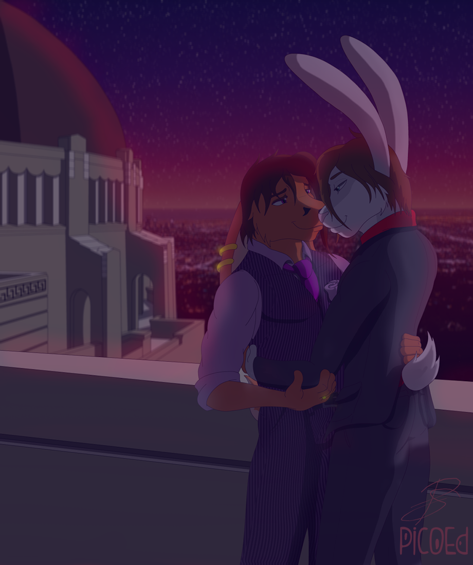 As the sun begins to set on the City of Angeles, and the lights begin to glow brighter in the darkness, a pair of bunnies lose themselves in each other's arms... ----------- A small gift I had started around Valentine's for my mate bunny.boy, that ended up taking a lot longer to finish due to the background (which i kinda cheated on, but didn't have much alternative to getting Griffith Observatory to look the way Fast wanted) and real life issues. I've got the last 2 pages of the comic sketched out and ready to go, just need to work on them, and after that, I've got some exciting news concerning future commissions.
