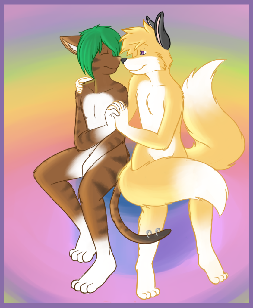 This is Lucuma and Chocomint holding paws and rubbing noses.
