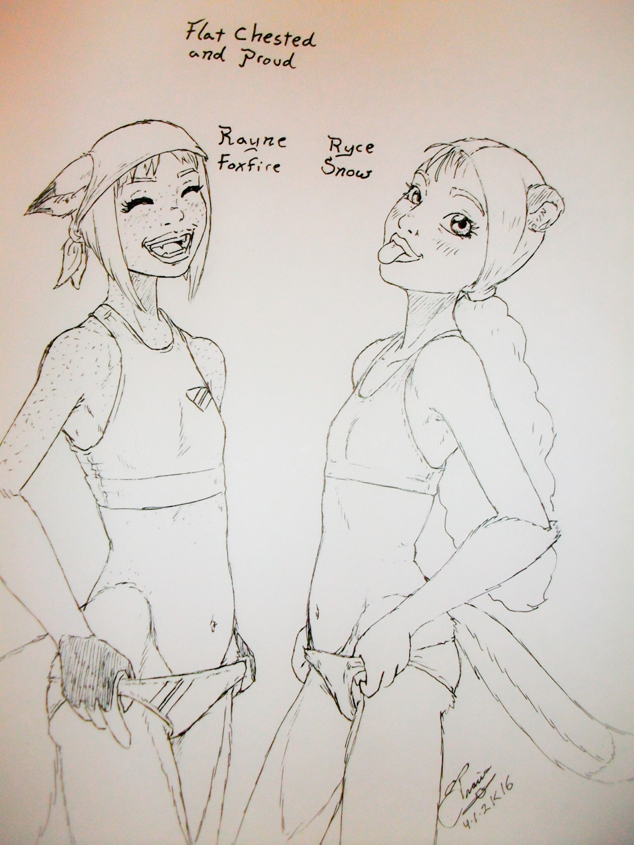 I wanted to draw this of my two flat-chested babes Ryce and Rayne being proud of their flatness. XD ;p